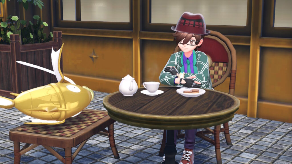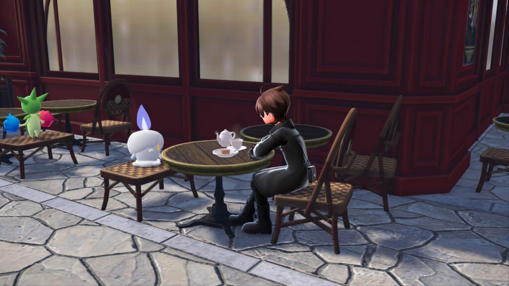 I am spending all my time in this game shopping and having tea with my Pokémon.